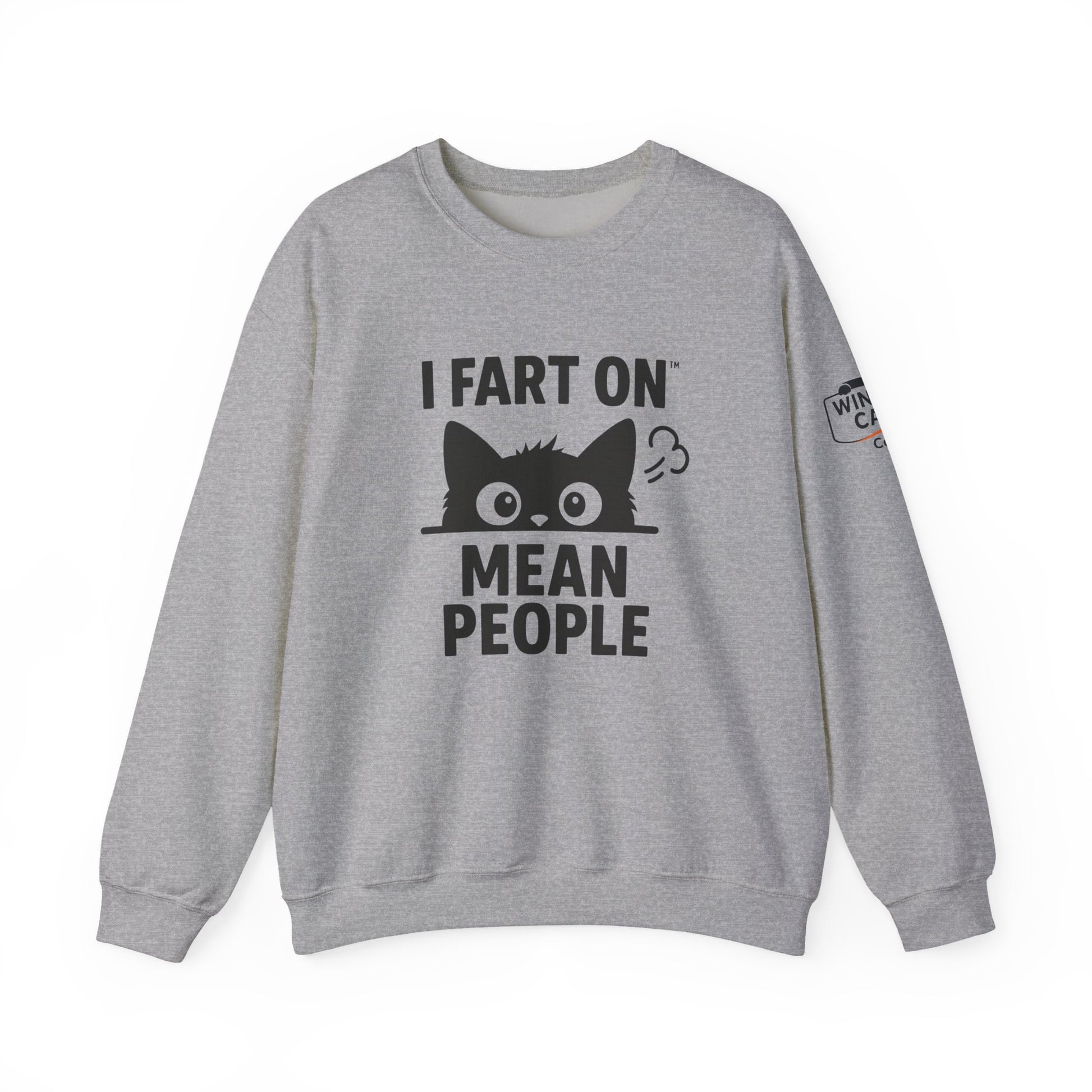 Funny Cat Sweatshirt - I Fart On Mean People, Gift for Cat Lovers, Cozy Crewneck, Humorous Apparel, Unique Cat Lover Gift
